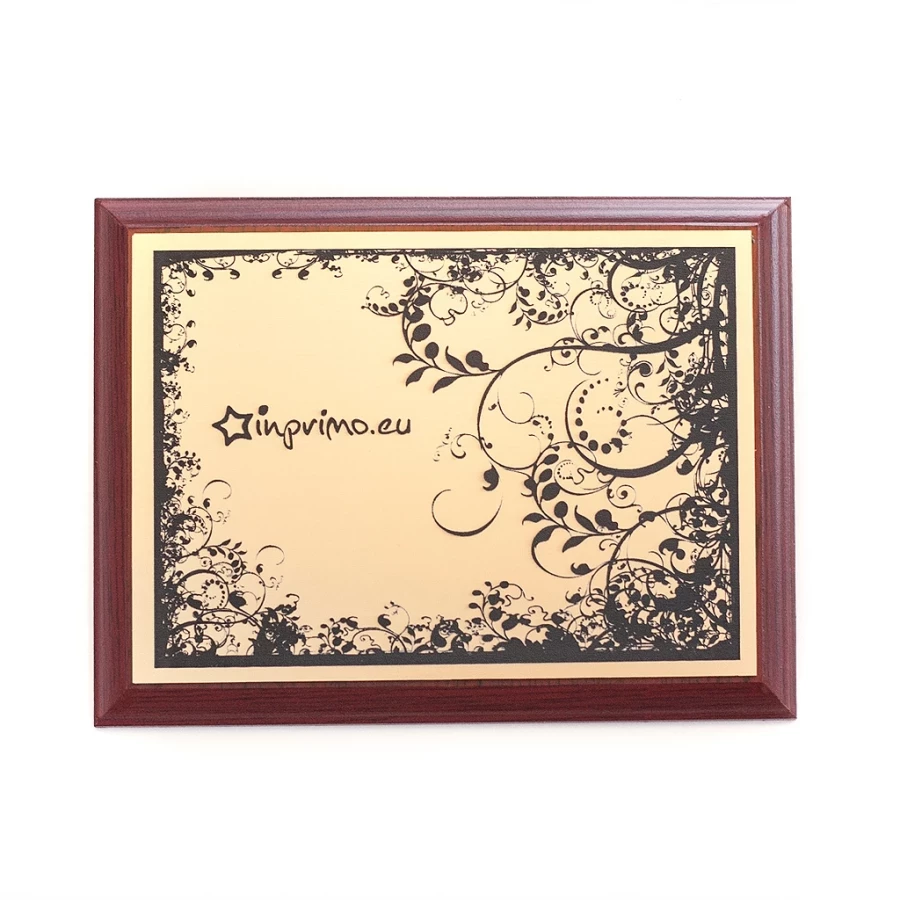 Αν θέλετε να τιμήσετε κάποιον με έναν ιδιαίτερο τρόπο, το δίπλωμα με χάραξη με λέιζερ θα σας βοηθήσει. Διαθέτει εξαιρετικά κομψό και επαγγελματικό σχεδιασμό, καθιστώντας το ένα άξιο διακοσμητικό στοιχείο για κάθε γραφείο. Το δίπλωμα με χάραξη με λέιζερ είναι κατασκευασμένο από πλαστικό απομίμησης ξύλου με ένα μεταλλικό τμήμα χρυσού χρώματος, στο οποίο μπορεί να γίνει οποιαδήποτε χάραξη με λέιζερ. Το μοντέλο Laser είναι εξοπλισμένο με ένα πόδι στο πίσω μέρος, έτσι ώστε το χαραγμένο δίπλωμα να μπορεί να τοποθετηθεί σε ένα ράφι. Υπάρχουν επίσης εσοχές στο πίσω μέρος, ώστε να διευκολύνεται η τοποθέτηση αυτού του ασυνήθιστου δώρου σε τοίχο.