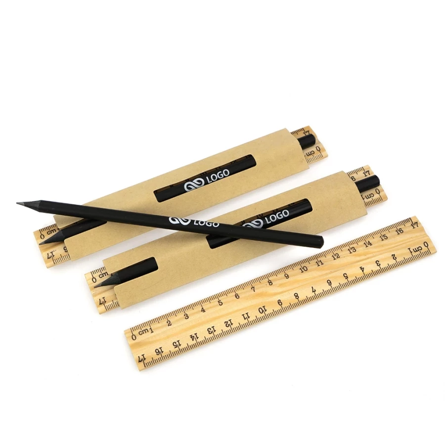 Το σετ μολυβιών και χάρακα Ezra είναι ένας ενδιαφέρων συνδυασμός δύο προϊόντων που χρησιμοποιούνται κυρίως στο σχολείο.Τα gadgets είναι κατασκευασμένα από ξύλο φλαμουριάς, ώστε να σας το ανταποδώσουν με ανθεκτικότητα. Το μαύρο χρώμα του μολυβιού θα τραβήξει τα βλέμματα, διευκολύνοντας τον εντοπισμό του λευκού λογότυπου της εταιρείας σας, το οποίο μπορείτε φυσικά να τοποθετήσετε πάνω του. Το σετ μολύβι+χάρακας Ezra είναι ένα ιδανικό δώρο όχι μόνο για τα παιδιά, αλλά και για όλους όσοι κάνουν υπολογισμούς με χάρακα σε καθημερινή βάση, για παράδειγμα. Φυσικά, το σετ θα είναι επίσης ιδανικό για διάφορες σχολικές, σχεδιαστικές ή αρχιτεκτονικές εκδηλώσεις, όπου μπορείτε να κερδίσετε πελάτες.